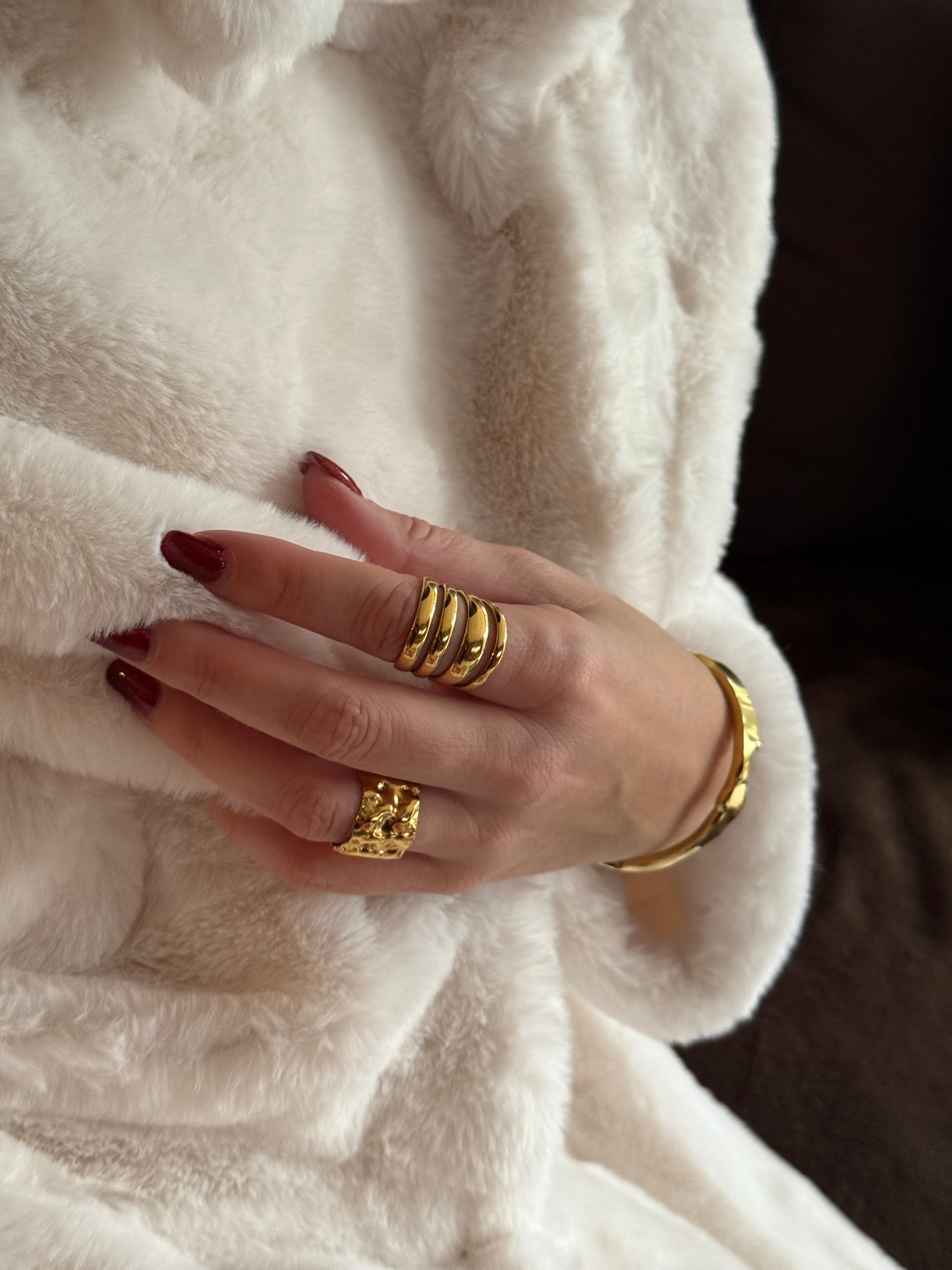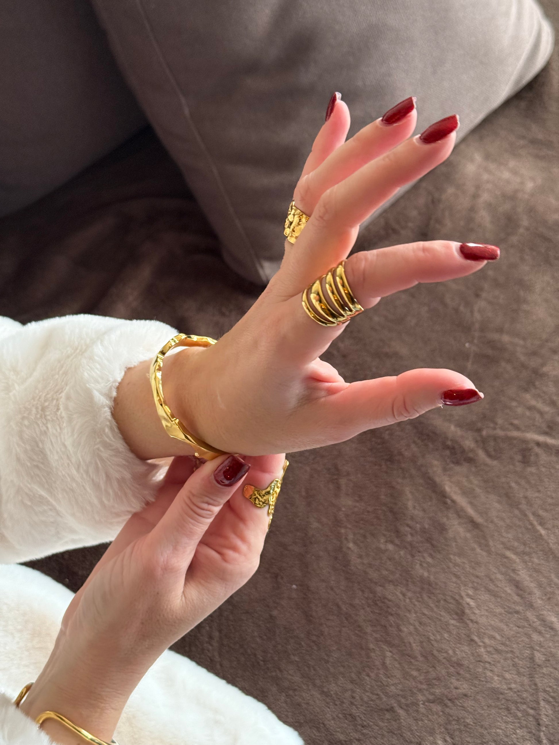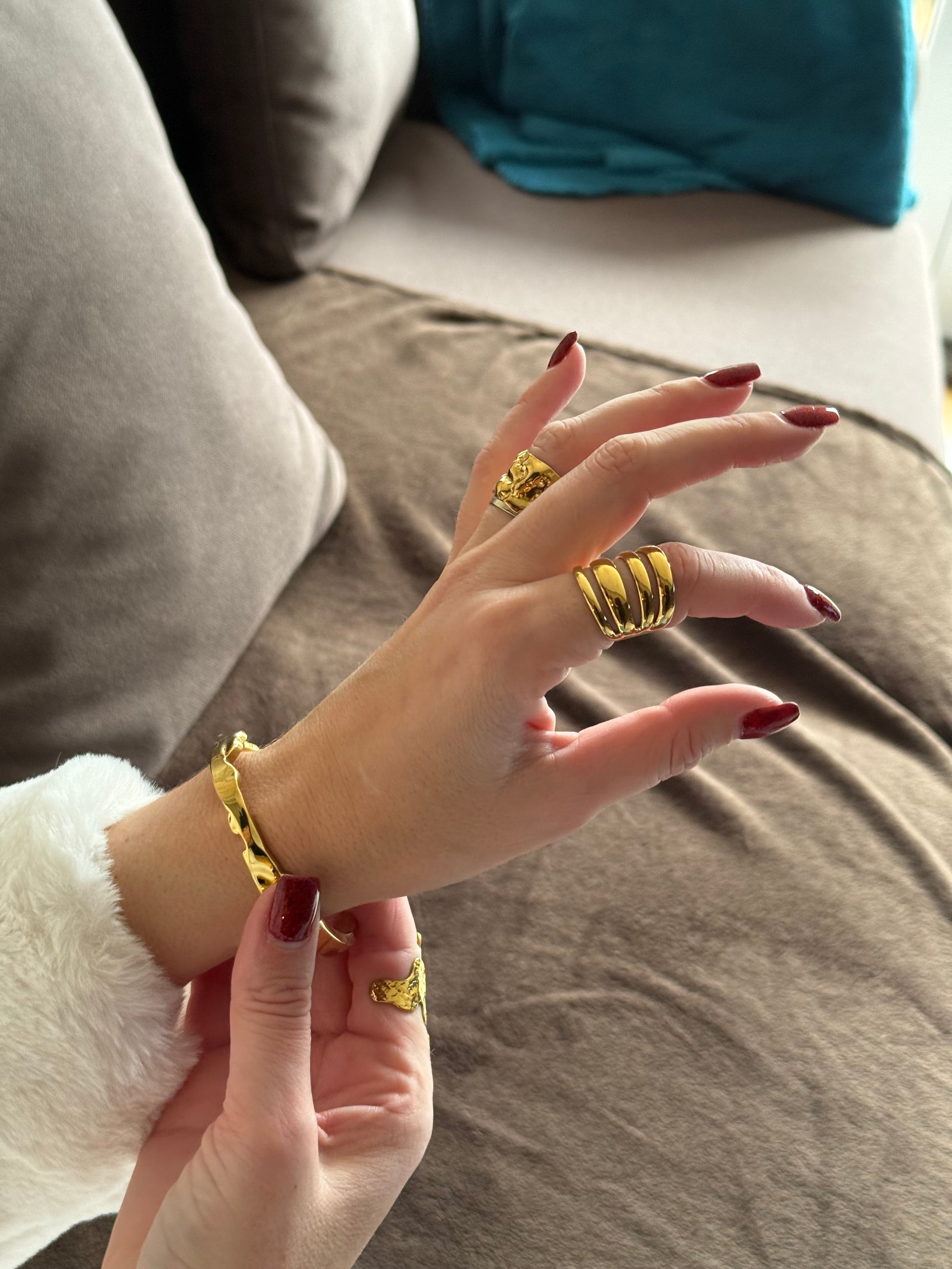 É a joia que traduz o invisível. Com design intemporal e presença, foi escolhida para acompanhar quem irradia autenticidade. Em aço inoxidável dourado, une beleza, resistência e conforto, mantendo o brilho ao longo do tempo. Uma peça feita para durar e para refletir a sua verdadeira aura.