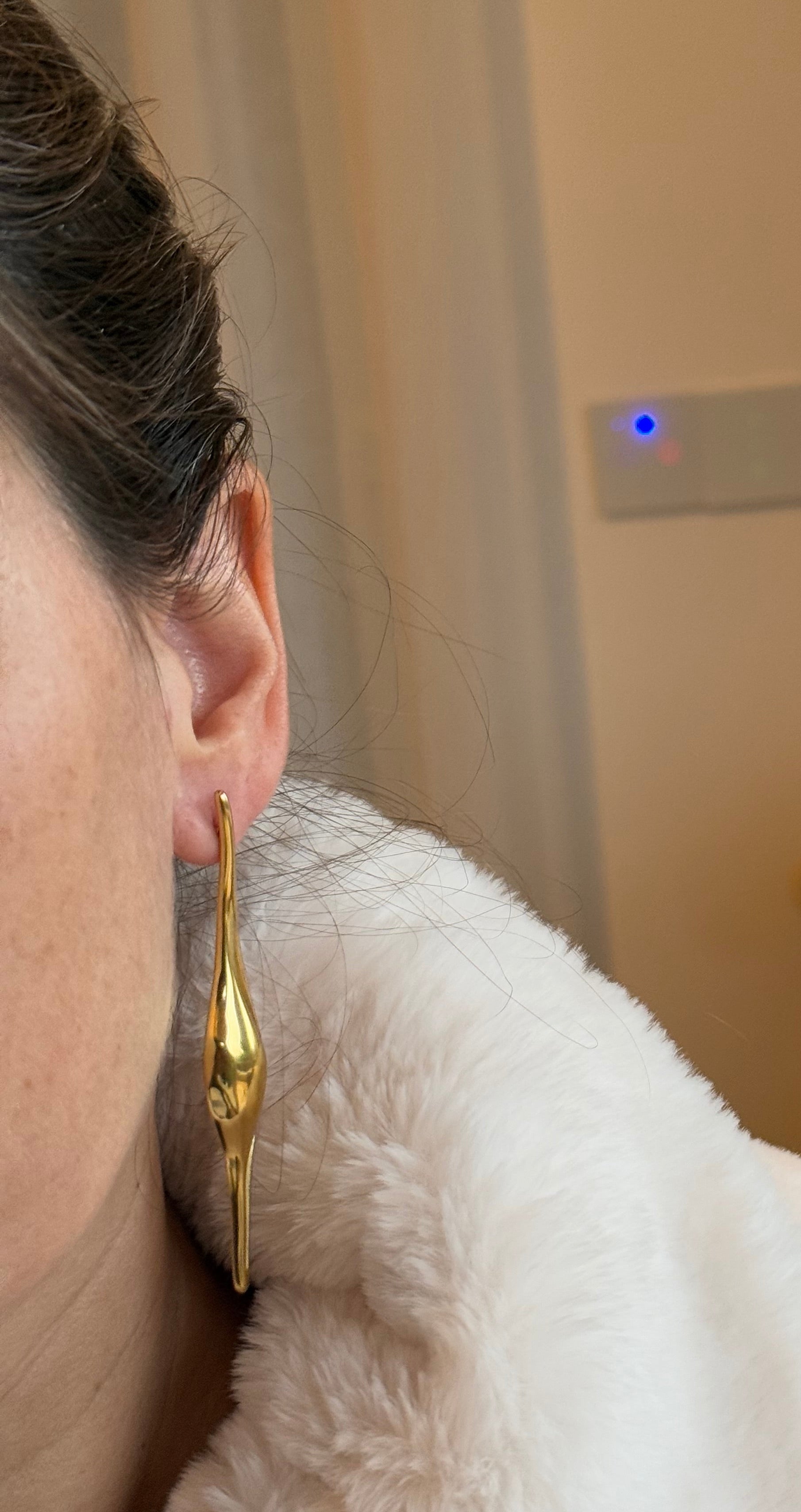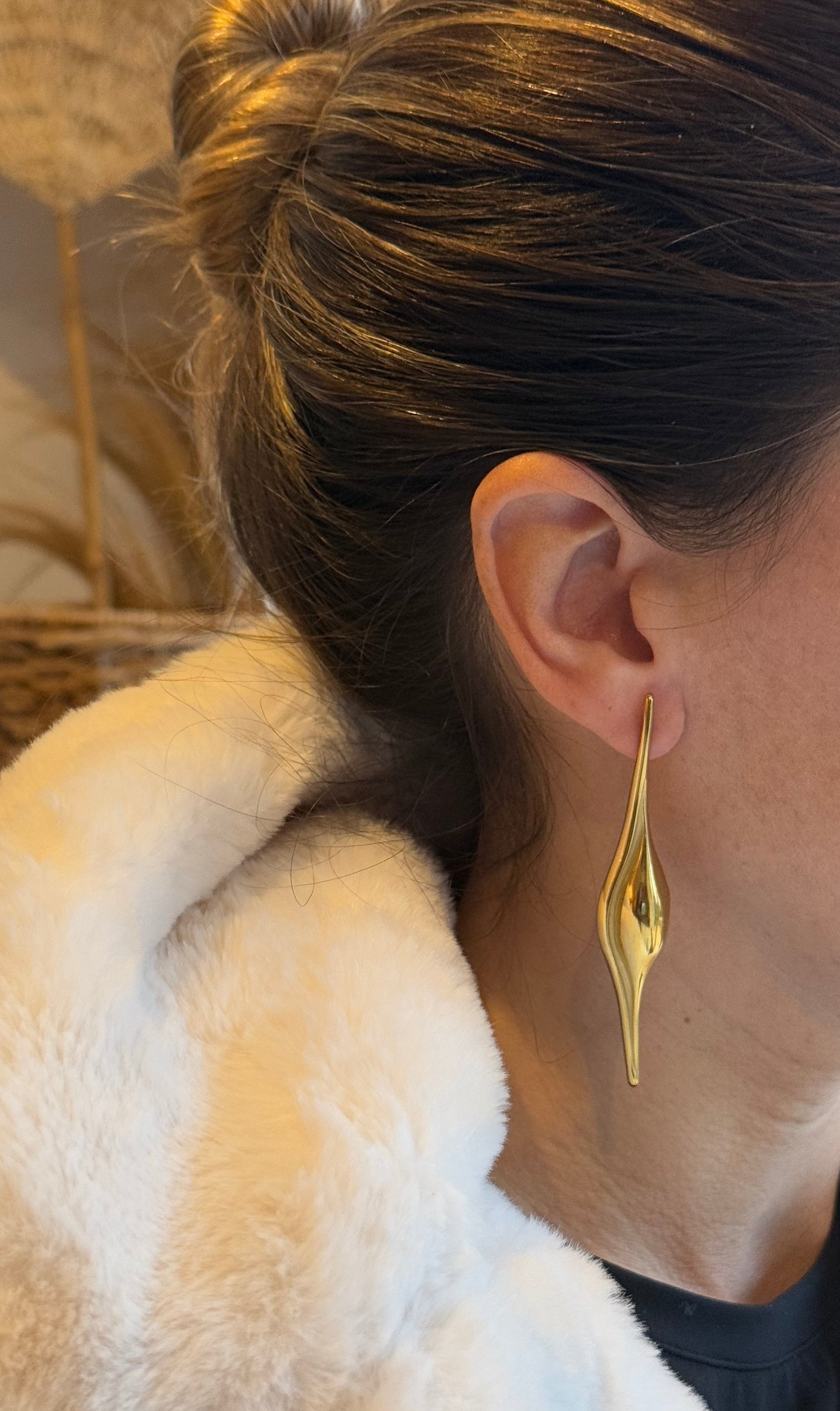Brinco Gota, de design orgânico e sofisticado, com acabamento dourado polido e formato alongado em gota esculpida. Uma peça elegante e contemporânea, que reflete a luz de forma sutil e valoriza o rosto com movimento e presença. Ideal para quem busca um acessório marcante, versátil e atemporal, perfeito para compor looks do dia a dia ou ocasiões especiais.