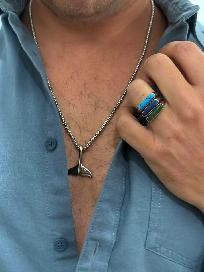 Em aço inoxidável de alta durabilidade, com acabamento prateado luminoso, este colar mantém o brilho e a integridade ao longo do tempo, resistente à água, ao sal e ao quotidiano.